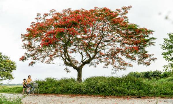 Cây phượng cao niên trên con đường quê lượn lờ đơn độc, xòe rộng tán để lá phượng thỏa sức níu kéo những hạt sương mai, kết thành tràng chuỗi hạt lóng lánh, kiêu kỳ.