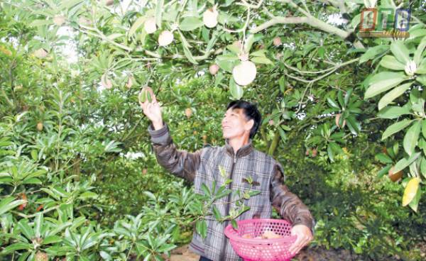 Mô hình trồng hồng xiêm của ông Đang là mô hình lớn, có thu nhập cao nhất xã, được nhiều người đến học hỏi kinh nghiệm.