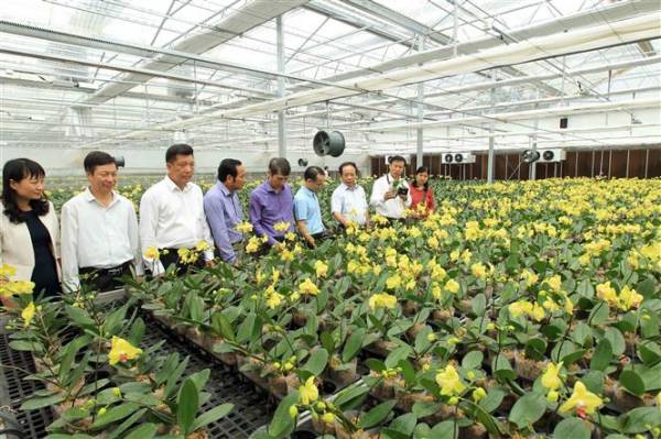Mô hình sản xuất hoa lan ứng dụng công nghệ cao tại huyện Thủy Nguyên. Ảnh: An Đăng/TTXVN.