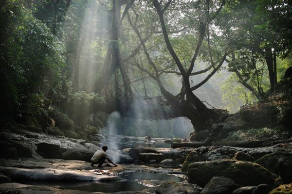 Do ảnh hưởng bởi khí hậu nhiệt đới gió mùa, lượng mưa tại Cherrapunji cũng thay đổi theo từng tháng. Để đối phó với tình hình ẩm ướt quanh năm, người dân đã bện hàng nghìn chiếc rễ cây vững chắc nhất làm thành những cây cầu bắc qua các tuyến đường rừng trơn trượt. Ảnh: Theatlantic.