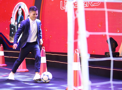 Quang Hải giao lưu và thể hiện những đường bóng đẹp tại buổi giao lưu với các em học sinh
