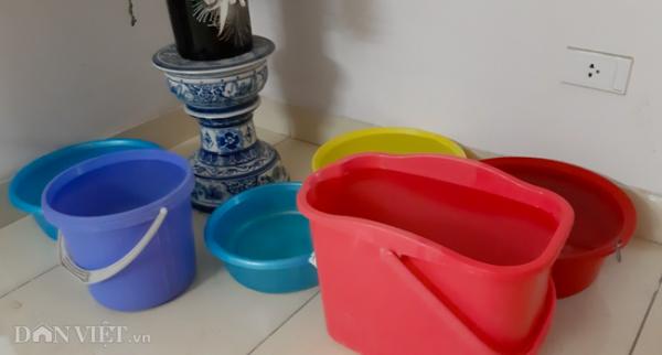 Nhiều hộ dân đã phải sử dụng tất cả các loại vật dụng như xô, chậu nhựa để tích trữ nước sinh hoạt.