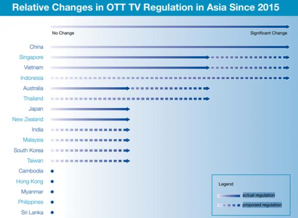Sau 3 năm, kể từ năm 2015 đến 2018 (thời điểm báo cáo phát hành), các chính sách điều tiết dị.ch vụ OTT TV của Việt Nam đã có những thay đổi đáng kể (ngang với Singapore và hơn rất nhiều các quốc gia châu Á khác), hơn nữa còn đang để xuất ra các quy định để hoàn thiện cơ chế quản lý dị.ch vụ này, nhưng dường như các doanh nghiệp kinh doanh OTT vẫn còn đang "gặp khó" trong kinh doanh.