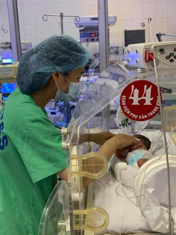 Ngay sau bé trai 1,5 kg cất tiếng khóc chào đời, em được các bác sĩ chuyên ngành sơ sinh tiếp nhận cấp cứu đưa vào lồng ấp và chuyển sang Bệnh viện Phụ sản Trung ương. Hiện sức khỏe của bé Bình An- con sản phụ Liên đã có tiến triển tốt, bé đã có phản xạ và đang được các y bác sĩ cho ăn với mức 4ml sữa/lần, ngày ăn 8 cữ.