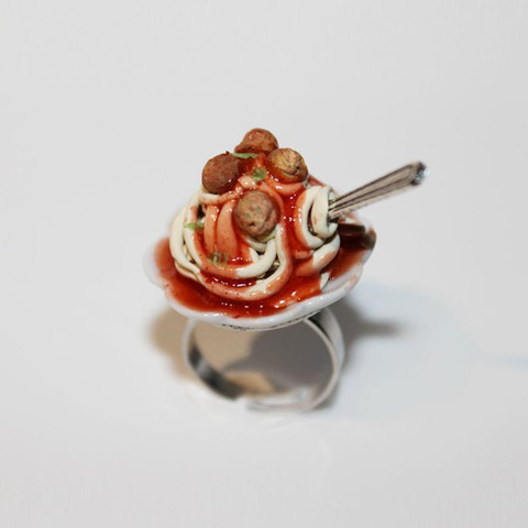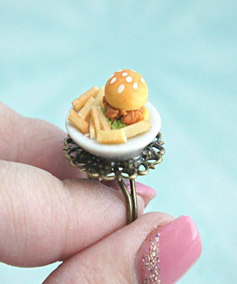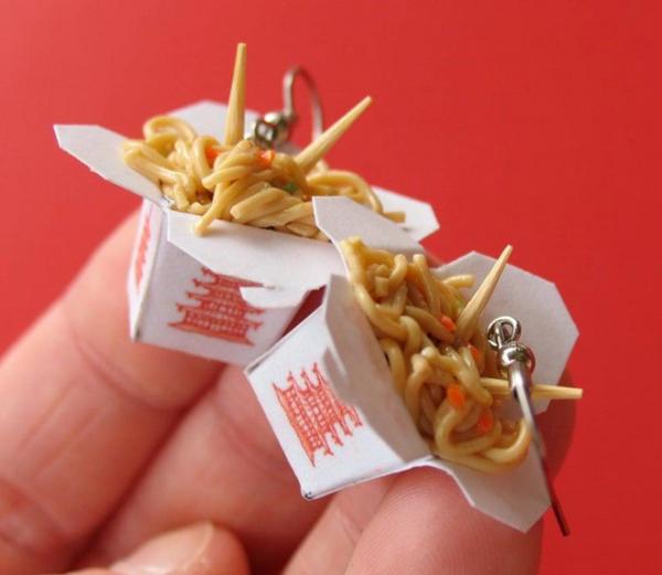 Không chỉ đa dạng về chủ đề món ăn, ý tưởng này còn được áp dụng cho nhiều loại hình trang sức phụ kiện khác nhau như nhẫn đeo tay, vòng cổ, túi x.á.ch... Một số ý tưởng rất đáng yêu, một số khác lại độc đáo đến buồn cười. Ảnh: Dleesnow, HugsKissesMINI, ShinyStuffCreations.