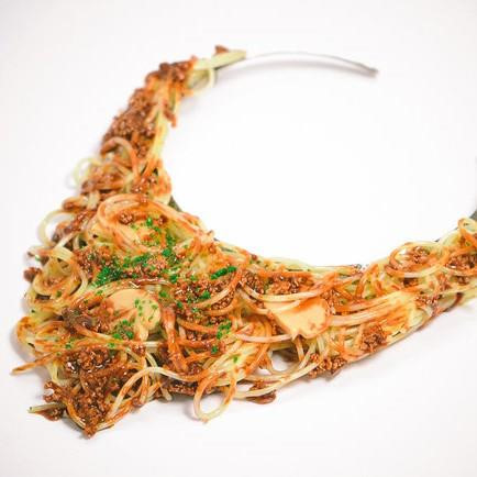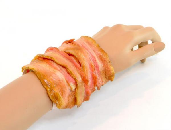 Một công ty Nhật Bản cũng đã từng "gây sốc" cộng đồng mạng khi tung ra một bộ sưu tập trang sức mô phỏng đồ ăn giống thật đến kinh ngạc. Những hình ảnh của dòng sản phẩm này gây nhiều sự chú ý và khiến nhiều người phải bật cười vì quá kì dị, vì không ai nghĩ rằng có ngày mình sẽ ra đường với vài lát thịt xông khói đeo trên tay hay đội một phần mì trứng trên đầu. Ảnh: Laughing Squid.