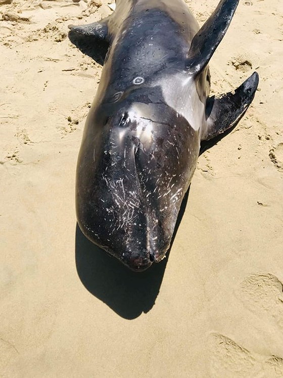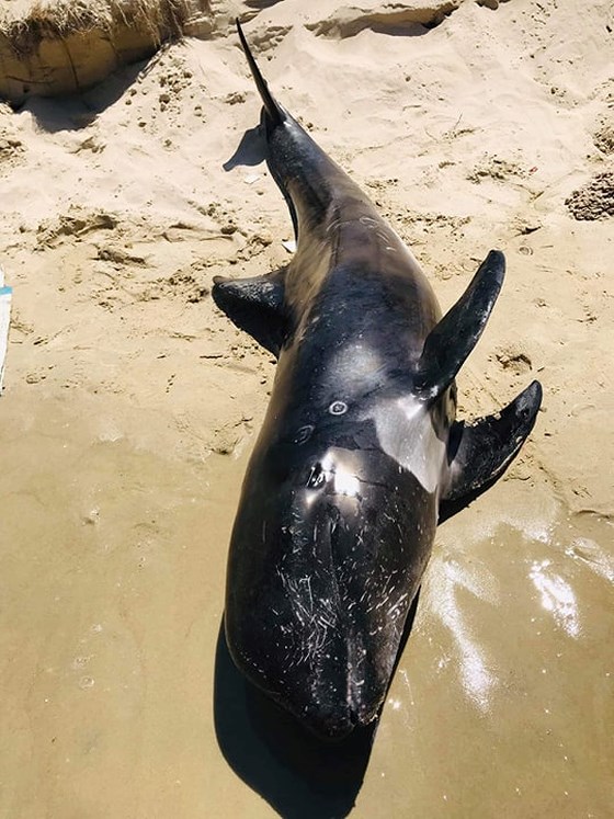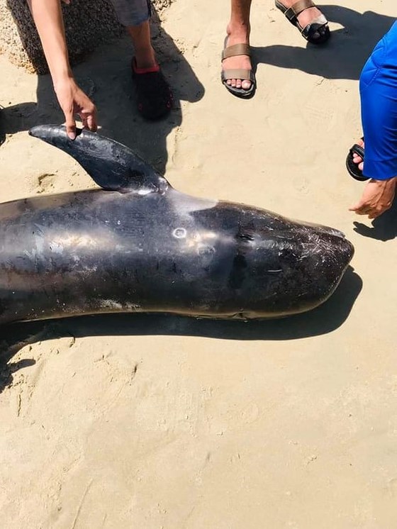 Cá voi con chết dạt vào bờ biển Hòn Cau.