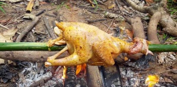 Để có món gà nướng hoàn hảo, bạn nên chọn nướng gà bằng than hoa. Chỉ cần cho phần gà đã phết gia vị lên vỉ nướng sau đó kẹp chặt rồi đem nướng trên bếp than hoa nóng hồng.