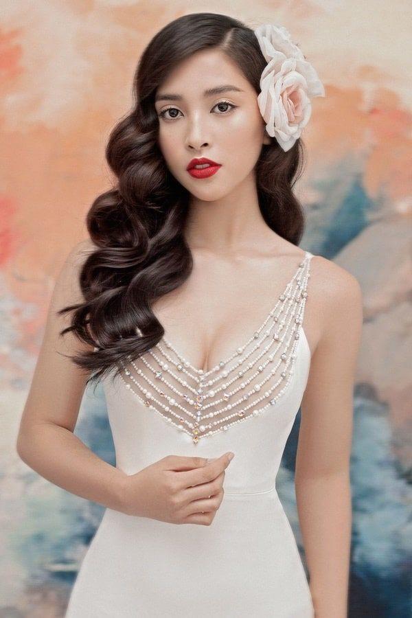 Tuy phong cách này dường như làm cho nàng Hậu tuổi 18 trông khá già dặn nhưng ngược lại có thể tô đậm vẻ đẹp quyến rũ của Tiểu Vy. Trong đó, màu son đỏ rực giúp cô hoá thân thành quý cô cổ điển đầy cuốn hút.