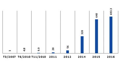 Vốn điều lệ QBS từ khi thành lập dến nay (Đơn vị: tỷ đồng).