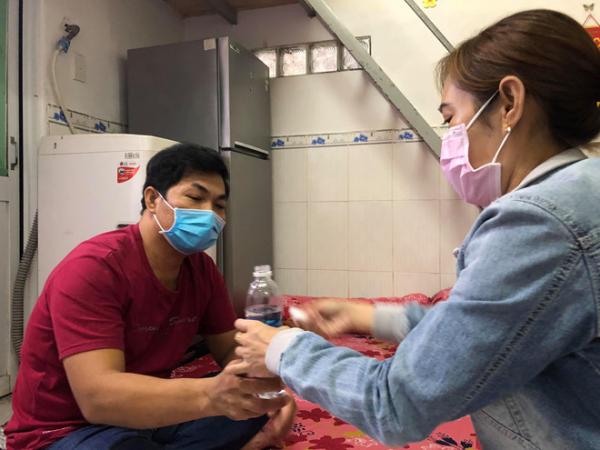 Mỗi ngày, chị Hạnh canh giờ, đưa thuốc cho chồng uống. Ngoài ra, chỉ đảm nhiệm thêm việc chăm sóc anh