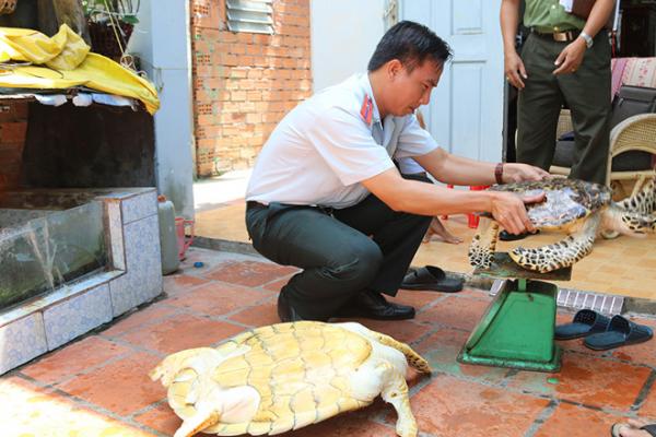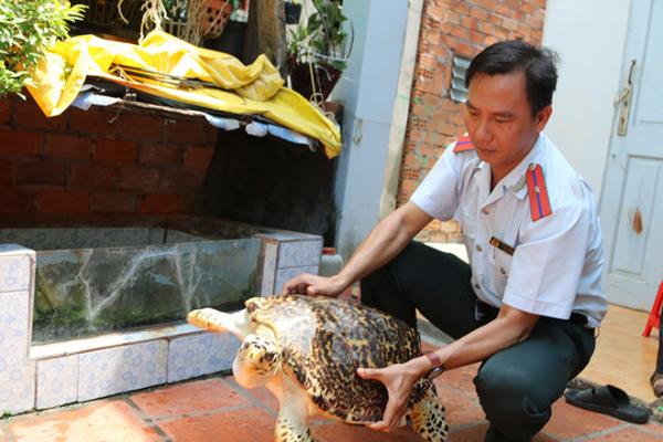 Ngày 15.5, đại diện Sở NN&PTNT tỉnh Bà Rịa - Vũng Tàu phối hợp cùng Công an tỉnh đã đến nhà ông Võ Kim Chí (63 tuổi, ngụ đường 30 Tháng 4, P.Thống Nhất, TP.Vũng Tàu) để tiếp nhận hai cá thể rùa biển (đồi mồi) quý hiếm.