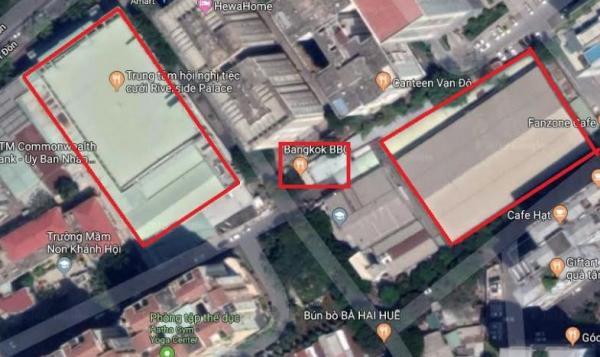 Những khu đất vàng tại đường Bến Vân Đồn mà Khahomex được UBND .TPHCM cho thuê (Ảnh chụp bản đồ vệ tinh)