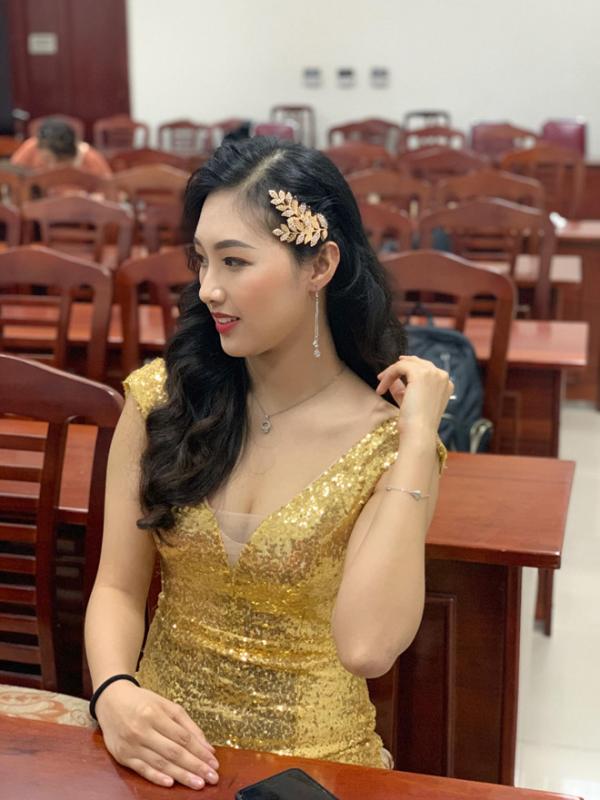 Hoa khôi Học viện Ngân hàng có gương mặt xinh đẹp với sóng mũi cao, đôi mắt to tròn và nụ cười dễ mến. Đặc biệt, Bảo Ngọc còn sở hữu chiều cao nổi bật 1,73 m.