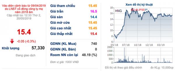 Trên thị trường, cổ phiếu HNG tích luỹ quanh vùng giá 15.000-16.000 đồng/cp.