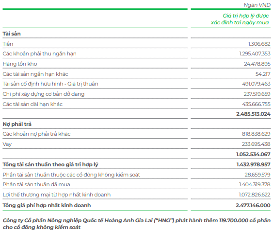 Giá trị hợp lý được x.á.c định theo giá trị ghi sổ của tài sản và nợ phải trả có thể x.á.c định được của Hưng Thắng Lợi tại ngày mua được trình bày dưới đây: