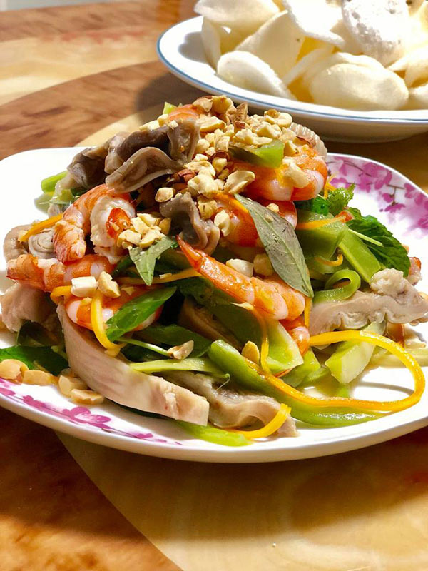 ⁃ Trộn: rau tiến vua + bao t..ử + tôm + nước mắm + dầu tỏi phi + chanh để 15 phút cho thấm.
