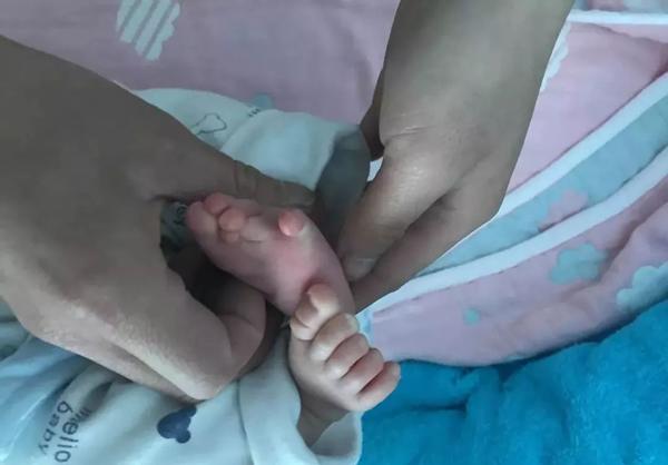 Đến 9 giờ 30 phút, bác sĩ đi ra và nói với anh Liao rằng con anh bị khuyết tật, thiếu một bên tay, ngón tay và ngón chân còn lại thì bị dính liền.