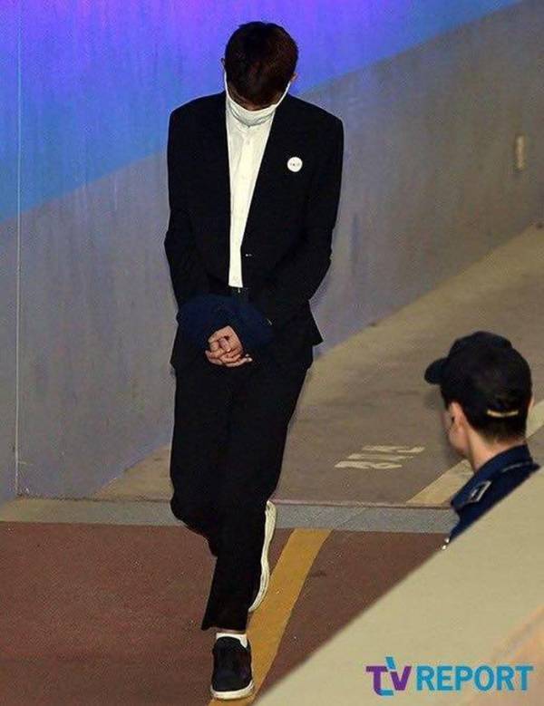 Xuất hiện tại tòa án sơ thẩm vào ngày 10/5, Jung Joon Young trông sút cân đáng kể, anh cắt tóc ngắn và cúi gằm mặt vì xấu hổ khi bị còng tay áp giải vào tòa.