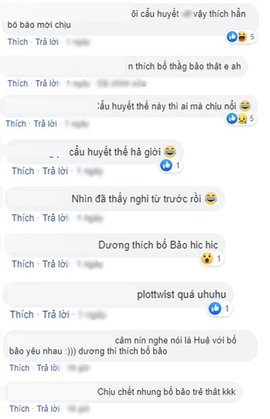 Trong hình ảnh hậu trường được chia sẻ trên mạng xã hội, Quốc và Huệ đã cùng nhau đi uống nước. Huệ khá e thẹn còn Quốc lại đang say mê nói chuyện. Dù nhìn thế nào cũng thấy Quốc và Huệ giống như đang hẹn hò cùng nhau. Cặp đôi này ngay lập tức được khán giả "chèo thuyền" tích cực.