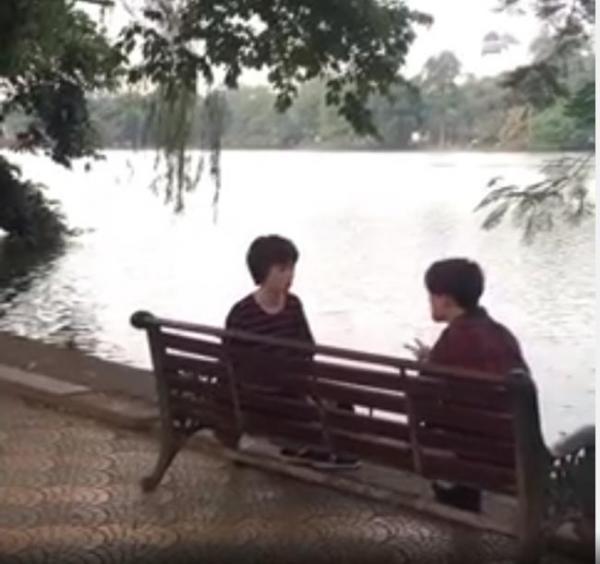 Hình ảnh hậu trường cảnh Dương ngồi thuyết phục Bảo rằng chuyện Dương thích chú Quốc và chơi với Bảo là hai chuyện khác nhau.
