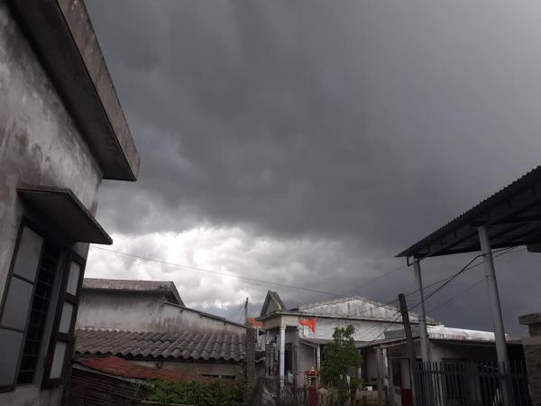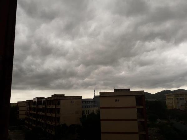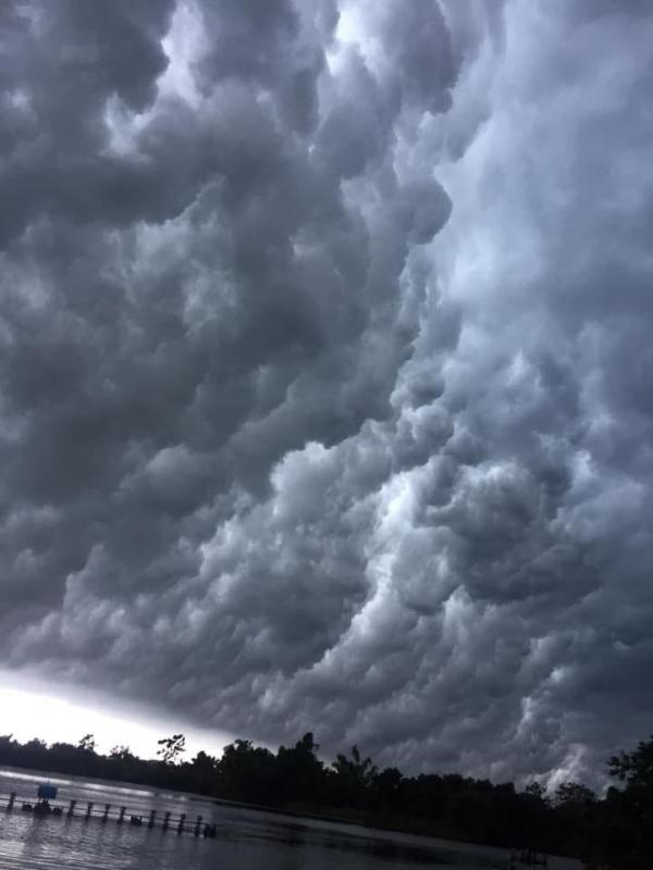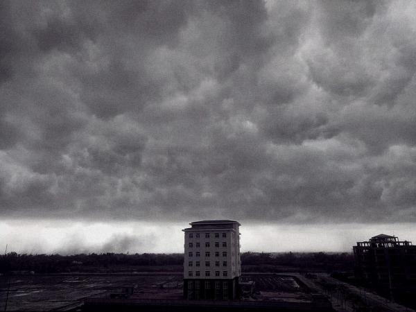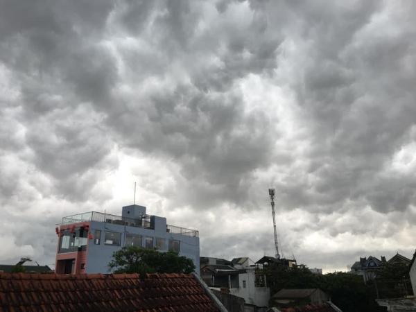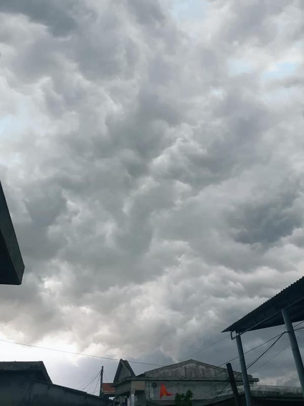Cả bầu trời được bao phủ bởi những đám mây cuồn cuộn trước khi cơn mưa lớn ập xuống. Ảnh: FB