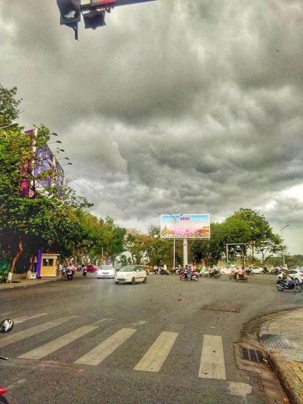 Hình ảnh mây đen kéo đến phủ kín bầu trời ở Huế báo hiệu chuẩn bị có một cơn mưa lớn được chia sẻ trên mạng xã hội. Ảnh: FB