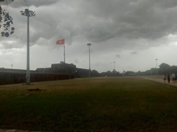Hình ảnh mây đen mù mịt phủ kín bầu trời được chụp lại ở Đại Nội. Ảnh: FB