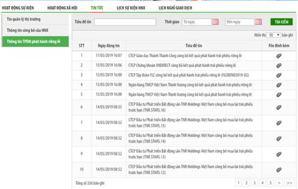 Thông tin về trái phiếu doanh nghiệp hiện nay đã được công khai trên website của HNX