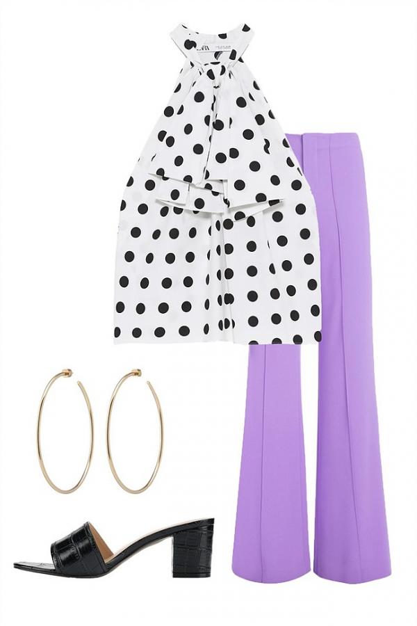 Một chiếc áo yếm cổ tiểu thư kết hợp quần legging ống rộng cạp cao mang đến cho bạn vẻ ngoài vừa trẻ trung vừa năng động. Set đồ dự tiệc sẽ hoàn hảo hơn với bông tai to bản và dép hở mũi.