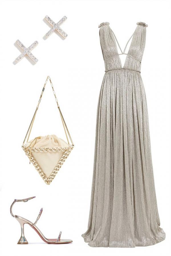 Nếu được mời với tư cách người thân hay đến tiệc có lượng khách mời hàng ngàn người, sét đồ dự tiệc của bạn cần có độ sang trọng và tinh tế nhất định. Một chiếc đầm dạ tiệc dài được cắt may từ loại vải thoáng khí, giày cao gót mảnh, đính đá. Đừng quên túi x.á.ch mini và hoa tai có cùng thiết kế.