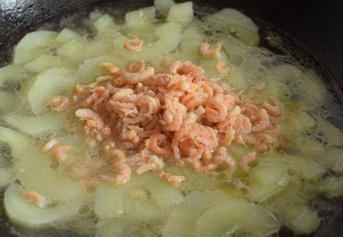 - Bước 4: Đổ lượng nước vừa ăn vào đun sôi sau đó đổ tôm khô vào cùng chút muối, rượu cho vừa ăn. Tiếp tục đun sôi cho đến khi tôm chín và dưa chuột mềm là được.