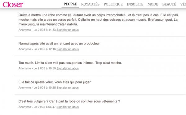 Bài viết của Closer Mag ngay lập tức được độc giả Pháp đón nhận và không ít người đã để lại bình luận về Nữ hoàng nội y Ngọc tri..nh cùng bộ váy thị phi của mình. Đa phần các bạn đọc đều đưa ra ý kiến chỉ trích sự xuống cấp của thảm đỏ LHP Cannes và yêu cầu ban tổ chức có trách nhiệm.
