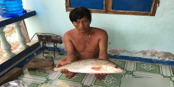 "Sau khi con cá dài khoảng 60cm và nặng hơn 3kg bị mắc lưới, gia đình tôi phát hiện một vết chấm ở đuôi nên khẳng định cá này là cá sủ vàng. Tuy nhiên, thả vào chậu nước một thời gian sau thì con cá bị chết.