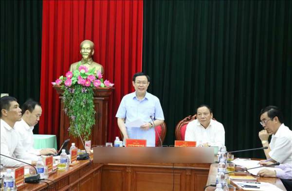 Đồng chí Vương Đình Huệ, Ủy viên Bộ Chính trị, Phó Thủ tướng Chính phủ phát biểu tại buổi làm việc.