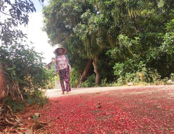 Các con đường dẫn vào làng đỏ rực hoa lộc vừng. Ảnh: AT