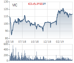 Biến động giá cổ phiếu Vingroup trong 1 năm