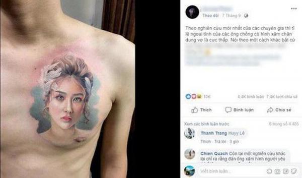 Bài viết nhanh chóng thu hút sự quan tâm của dân mạng với nhiều ý kiến trái chiều. Người cho rằng, hình xăm là thứ lưu lại mãi trên da thịt trong khi cuộc sống hôn nhân khó nói trước. Nếu có một ngày tình cảm đổ vỡ, hình xăm ấy sẽ là rào cản để người chồng bước tiếp.