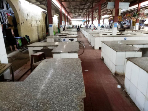 Cảnh đìu hiu ở tại khu vực kinh doanh thịt lợn ở chợ Thiều