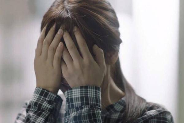 Cô ngồi trên nắp bồn cầu, hai tay siết chặt vào nhau.