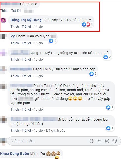 Bình luận này ngay lập tức nhận phải phản ứng dữ dội từ fans Midu: "Bạn vô duyên thế. Có thể nhìn Midu không nét như mấy người thẩm mỹ nhưng gương mặt của Du rất hài hòa, thanh nhã, tươi trẻ, trong trẻo. Du đẹp tự nhiên và trẻ gấp vạn lần người phẫu thuật thẩm mỹ nhé".