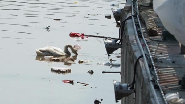 Những con thiên nga ở sông Tam Bạc đang phải chịu đựng những ngày nắng nóng