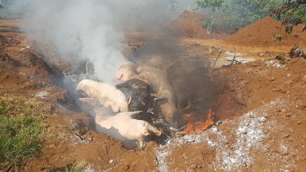 Lợn dị.ch được tiêu hủy bằng phương pháp đốt, sau đó chôn lấp.