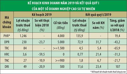 Tuy vậy, thực tế những năm qua, giá mủ cao su, cũng như giá gỗ cao su thường xuyên biến động bất thường, khiến hai nguồn doanh thu, lợi nhuận chính của các doanh nghiệp cao su là bán mủ và thanh lý vườn cây dễ bị biến động theo. Trong quý I/2019, kết quả kinh doanh của nhiều doanh nghiệp cao su giảm mạnh so với cùng kỳ năm ngoái. Không ít doanh nghiệp thận trọng khi đặt kế hoạch kinh doanh năm 2019 suy giảm so với thực hiện năm 2018.