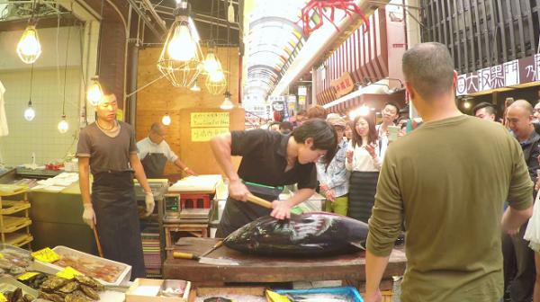 Với 180 gian hàng thức ăn tươi sống, chợ Kuromon ở Osaka xứng danh là địa điểm tạo ra tinh hoa của ẩm thực nơi này.