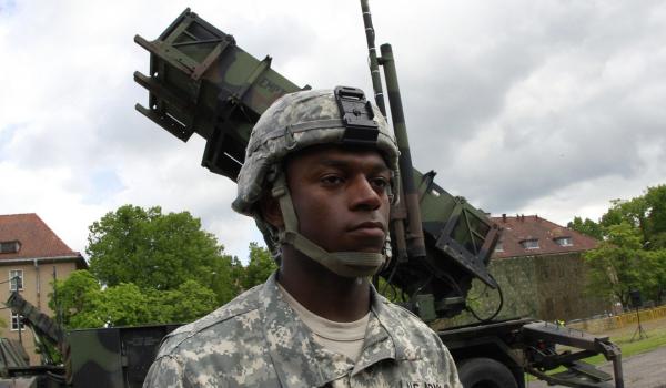 Lính Mỹ đứng gác bên cạnh một hệ thống tên lửa đất đối không Patriot. Ảnh: Reuters