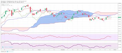 Chỉ số vẫn đang ở dưới đám mây và d.ao động ở giữa 2 đường Tenkan-Sen và Kijun-Sen, 2 ngưỡng này x.á.c định vùng d.ao động tầm hơn chục điểm. VN-Index có bóng nến trên dài và thân hẹp cho thấy giá thường được đẩy nên cao trước, rồi sau đó lực bán ép giá xuống sát gần giá mở cửa.
