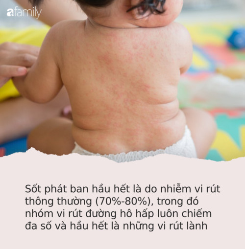 + Sốt phát ban thông thường: Sau khi giảm sốt, trẻ sẽ bị phát ban, đây là hồng ban dạng mịn và sáng, ít gồ lên mặt da, ban nổi đồng loạt khắp c.ơ. t.h.ể của trẻ và sau khi bay thường không để lại dấu tích gì trên da trẻ.