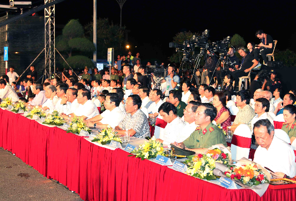 Các đại biểu và đông đảo du khách, người dân tham gia đêm nghệ thuật khai mạc Lễ hội hang động Quảng Bình năm 2019