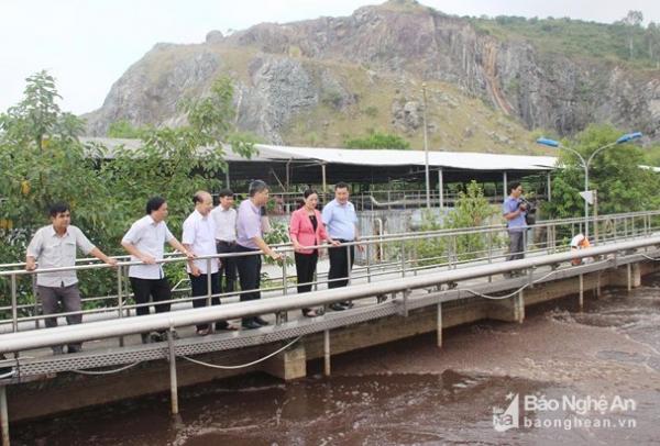 HĐND tỉnh giám sát công tác bảo vệ môi trường của các doanh nghiệp tại huyện Hưng Nguyên. Ảnh: Mai Hoa